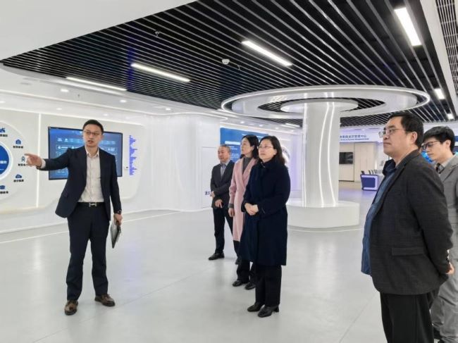 在嘉环科技教育BU负责人李隆帜的陪同下,魏萍一行实地考察了数字化展厅和华为培训中心南京分部,详细了解企业在智能网络建设、数智化综合服务、教育培训等业务的技术成果和软硬件基础条件。