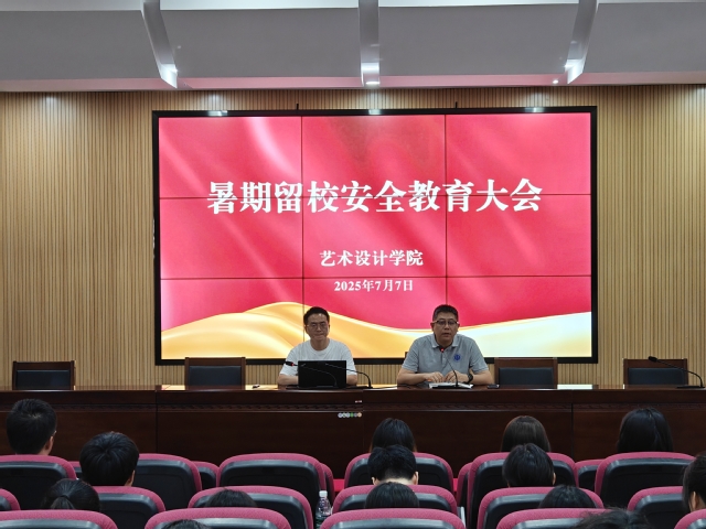 为切实做好学院暑期留校学生的教育管理工作,进一步增强学生的安全防范意识和自我管理能力,7月7日上午,艺术设计学院在综合楼606报告厅召开2025年暑期留校学生安全教育大会。学院党委副书记高原、学工办副主任(主持工作)王召、辅导员李斌出席会议,近50名暑期留校学生参会,会议由王召主持。