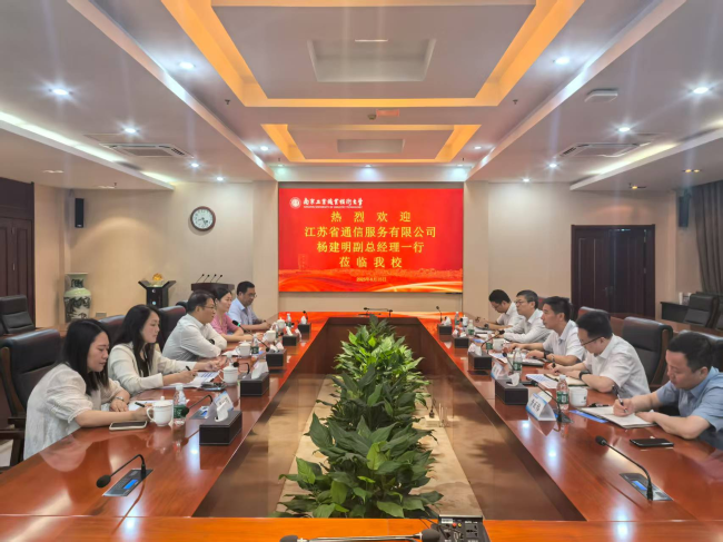 杨建明对学校的热情接待表示感谢,并介绍了江苏省通信服务有限公司的发展历程、组织框架与业务体系等情况。他表示,期待以此次交流为契机,推动校企双方在人才培养、技术创新等领域的深度合作,共同为强国建设及电子信息领域发展贡献力量。杨燕介绍了学院的专业设置、师资队伍、人才培养、社会服务等方面工作的开展情况。随后,双方与会人员围绕产教融合、协同育人等议题进行了深入探讨,并就具体合作事项达成共识。
