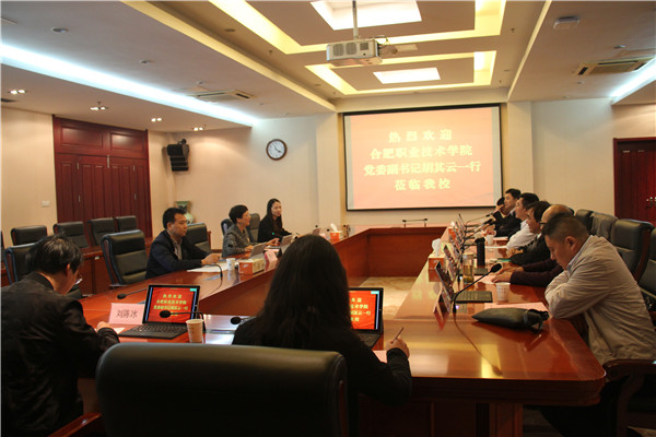 10月25日,合肥职业技术学院党委副书记胡其云率领相关部门负责同志来星空体育登录官网_星空(中国)交流。星空体育登录官网_星空(中国)党委副书记苏小冬及招就处、学工部等相关部门负责同志接待了来宾。