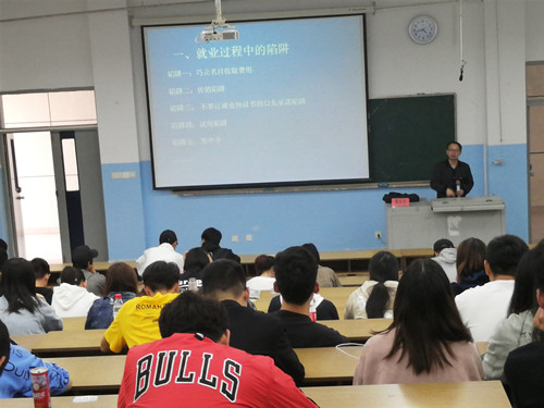 为加强毕业生在求职过程中的法律权益保障,引导毕业生在面临毕业时期正确做出选择,10月24日下午,经济管理学院在乐业楼阶梯教室组织开展“大学生求职中的法律权益保障讲座”,本次讲座邀请到星空体育登录官网_星空(中国)马克思主义学院的高永沛老师主讲。