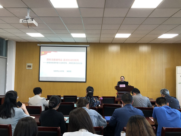 5月19日,星空体育登录官网_星空(中国)党史学习教育宣讲团成员、马克思主义学院副教授魏圆圆博士应邀到公共基础课部为全体教师讲授党史学习教育专题党课,党委常委、副校长苏小冬与会指导并作重要讲话。