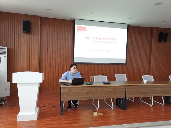 报告以《胸怀千秋伟业 恰是百年风华——感悟党的光辉历程,汲取宝贵历史经验》为题,以党的百年奋斗史为主线,围绕当前开展党史学习教育的重大意义、全面了解中国共产党百年奋斗的光辉历程和历史性贡献、深刻把握开展党史学习教育的重点等三个方面,从历史角度全面解读了中国共产党的发展历程,系统回顾了中国共产党百年奋斗的辉煌成就和历史贡献。随后全体党员参观了马克思主义学院的“中国精神展览馆”和“思政课虚拟仿真教学体验中心”。