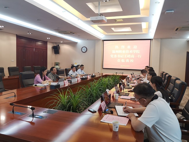 6月10日上午,温州职业技术学院党委书记王靖高一行来星空体育登录官网_星空(中国)考察调研。党委书记吴学敏,以及党委办公室、校长办公室、教务处(教师发展中心)等部门负责同志在行政楼辅楼一楼会议室接待了来宾。