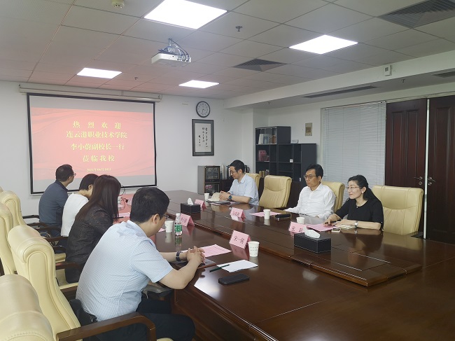 6月10日下午,连云港职业技术学院副校长李小蔚一行来星空体育登录官网_星空(中国)考察调研。党委副书记马成荣,以及党委教师工作部、人事处、科技处、发展合作处等部门负责同志在行政楼401会议室接待了来宾。