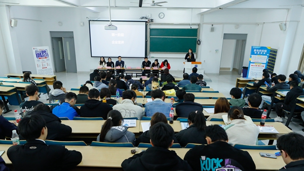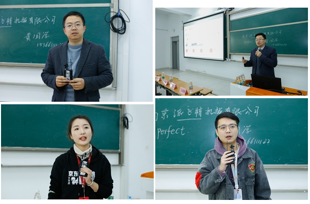 京东物流HR人力资源部万小青经理、南京派飞特机械有限公司人力资源部黄国学经理、浙江菜鸟供应链管理有限公司陈嘉铭经理分别介绍了各自企业的情况,并就同学们关心的问题做了解答。