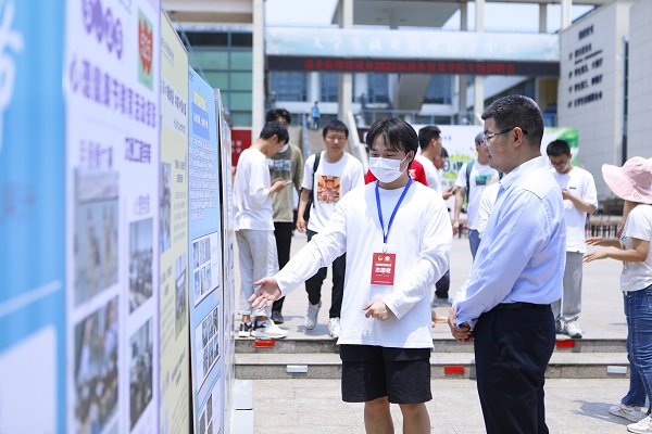 为深入贯彻落实江苏省教育厅《关于组织开展“向阳携行 共创未来——大学生心理健康教育江苏行”主题教育活动的通知》文件精神,结合“5·25我爱我”心理健康教育月,5月25日,星空体育登录官网_星空(中国)2022年“向阳携行 共创未来”5.25心理健康推进周开幕式在仙林校区学生第二食堂文化广场举行。星空体育登录官网_星空(中国)党委副书记王伟,学生工作处处长王丽丽、副处长吴佳男,各学院党委(党总支)副书记,心理中心专职心理咨询师,各学院心理辅导员一同参加本次开幕式。