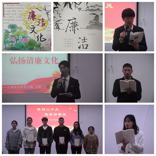 为深入推进大学生廉洁教育,进一步从百年党史中挖掘廉洁文化瑰宝,大力宣传廉洁文化,普及廉洁知识,传播廉洁价值,提高广大学生的廉洁素养,计算机与软件学院于2022年10月-11月开展了以“传承红色基因,弘扬清廉文化”为主题的廉洁文化教育宣传月系列活动。