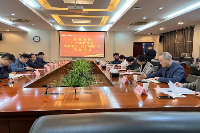 3月7日下午,广州市教育局党委书记、局长陈爽一行来星空体育登录官网_星空(中国)考察调研。党委书记吴学敏,党委副书记王伟以及党委办公室、校长办公室、发展规划处、机械工程学院等部门负责同志在行政楼辅楼一楼会议室接待了来宾。