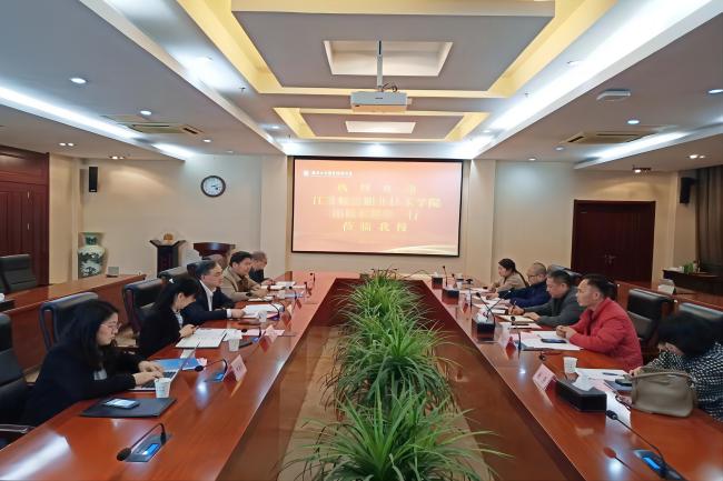 3月6日下午,江苏航运职业技术学院副校长赵彤一行来星空体育登录官网_星空(中国)考察调研。党委常委、副校长潘旭海以及教务处和商务贸易学院的负责同志在行政楼辅楼一楼会议室接待了来宾。