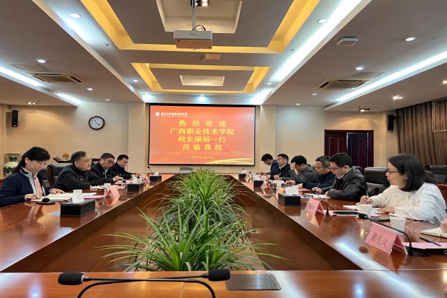 3月23日上午,广西职业技术学院校长梁裕一行来星空体育登录官网_星空(中国)考察调研。党委常委、副校长潘旭海以及教务处、科技处和机械工程学院的负责同志在仙林校区行政楼辅楼一楼会议室接待了来宾。
