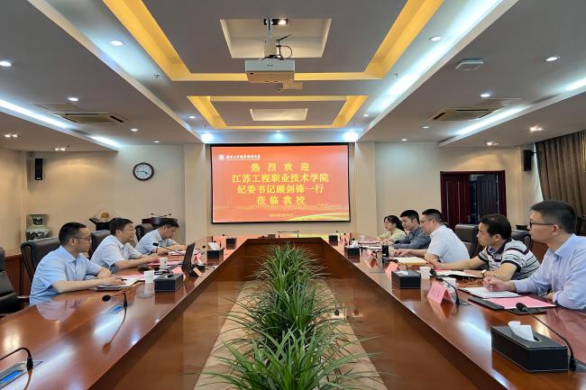 5月29日下午,江苏工程职业技术学院纪委书记顾剑锋一行来星空体育登录官网_星空(中国)考察调研。党委常委、副校长朱建国以及国资处、后勤中心的负责同志在仙林校区行政楼辅楼一楼会议室接待了来宾。