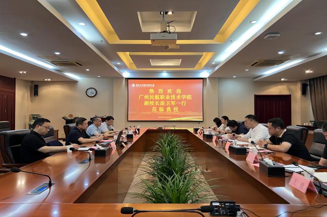 5月30日下午,广州民航职业技术学院副校长涂卫军一行来星空体育登录官网_星空(中国)考察调研。党委常委、副校长崔新明以及发规处、教务处、航空工程学院的负责同志在仙林校区行政楼辅楼一楼会议室接待了来宾。