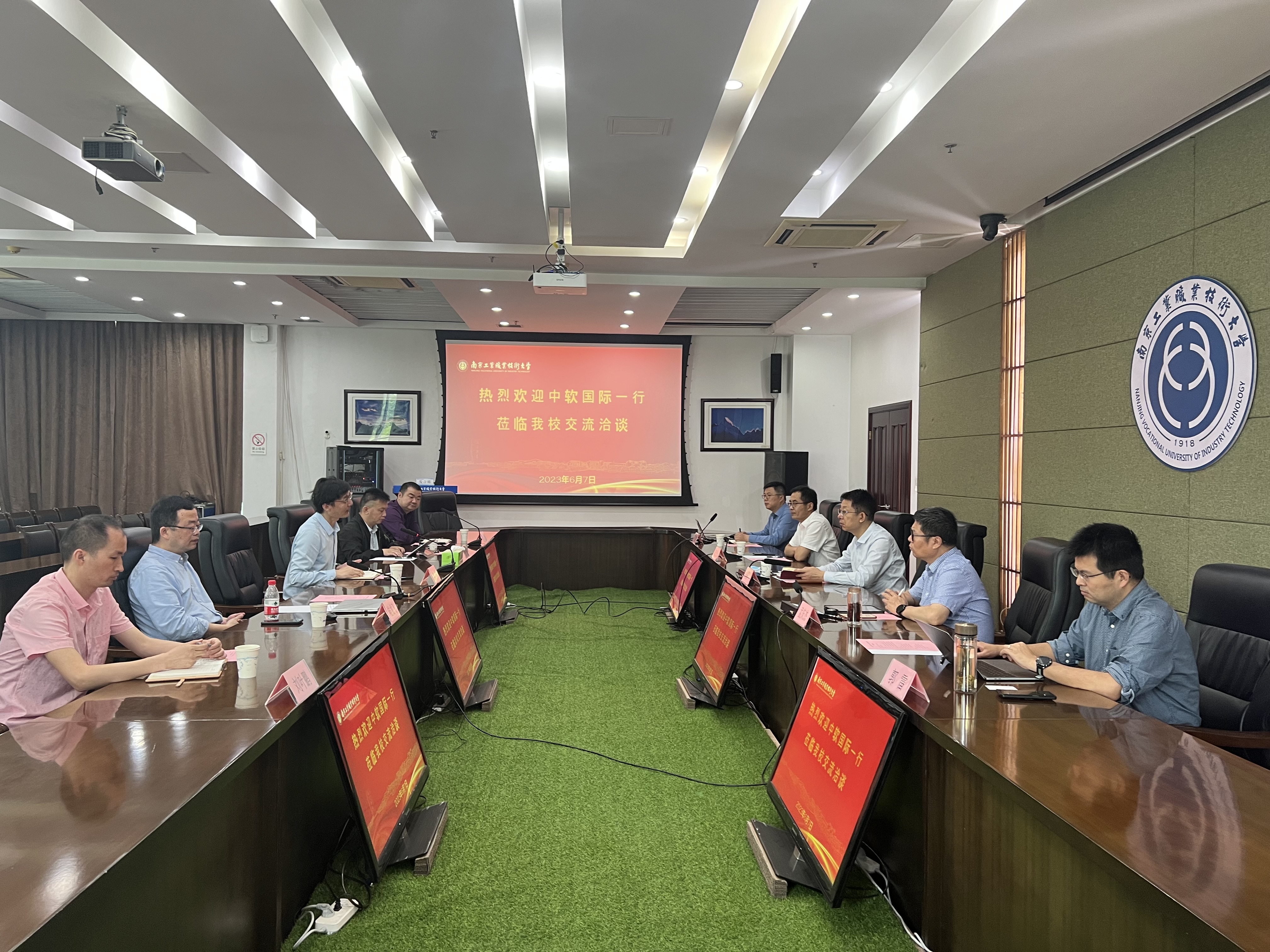 6月7日上午,中软国际教育科技集团高级副总裁姜军一行来星空体育登录官网_星空(中国)交流洽谈。星空体育登录官网_星空(中国)党委常委、副校长孙雁飞,科技处、发展合作处及计算机与软件学院相关负责人热情接待,双方在行政楼辅楼二楼会议室举行座谈。