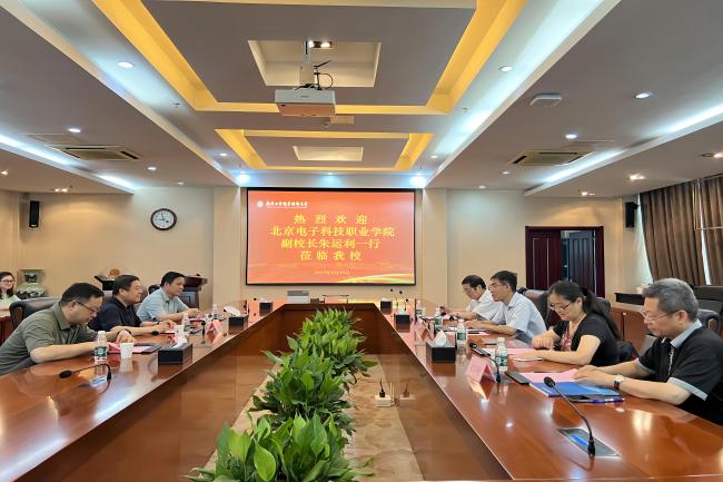 6月29日上午,北京电子科技职业学院副校长朱运利一行来星空体育登录官网_星空(中国)考察调研。星空体育登录官网_星空(中国)党委常委、副校长崔新明以及国资处、航空工程学院的负责同志在仙林校区行政楼辅楼一楼会议室接待了来宾。