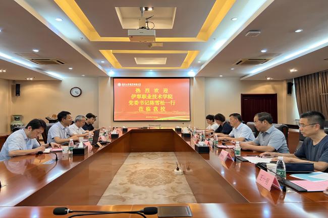 7月6日下午,伊犁职业技术学院党委书记陈雪松一行来星空体育登录官网_星空(中国)考察调研。星空体育登录官网_星空(中国)党委常委、副校长孙雁飞以及发规处、机械工程学院的负责同志在仙林校区行政楼辅楼一楼会议室接待了来宾。