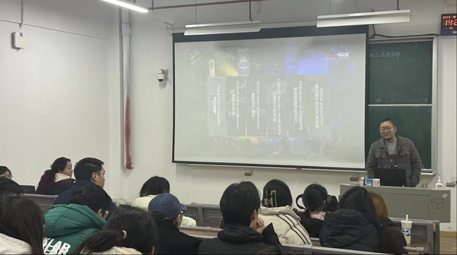 顾鹏以行业解读为开篇,深入剖析了影视行业的现状及发展趋势。他介绍了公司发展历程,让同学们对这一行业领军企业有了更深入的了解。通过展示知名影视作品视效制作案例,让同学们领略到了影视艺术的魅力;讲解LED虚拟拍摄技术,揭开了影视制作技术的新篇章;揭秘一线视效公司的影视制作、拍摄的台前幕后,让同学们对这一行业有了更直观的认识。最后,顾鹏对行业热门就业方向就业岗位进行了分析介绍,为同学们提供了宝贵的就业指导。通过本次讲座,同学们不仅了解了影视行业的最新动态,还对自己的职业规划有了更清晰的认识。