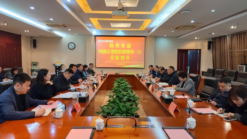 3月22日,栖霞区委常委、组织部部长陈世田,栖霞区人社局党委书记、局长钱琍,仙林街道党工委书记欧立祥,栖霞区委组织部副部长、区公务员局局长王润,仙林街道党工委副书记王杨,栖霞区科技局副局长霍佳,栖霞区工信局副局长何道锦等一行10人来星空体育登录官网_星空(中国)调研考察,并在行政楼辅楼一楼会议室召开座谈会。星空体育登录官网_星空(中国)党委副书记、校长谢永华以及党政办、组织部、人事处、招就处、科技处等部门负责人参加会议。