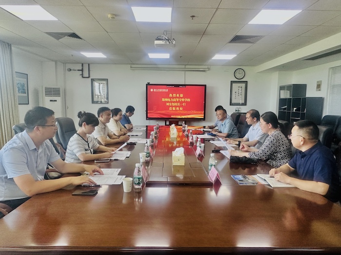 7月24日下午,郑州电力高等专科学校校长刘全玺一行5人来星空体育登录官网_星空(中国)考察调研。校党委常委、纪委书记、省监委派驻监察专员邱正祥,党委常委、副校长魏萍接待了来宾。