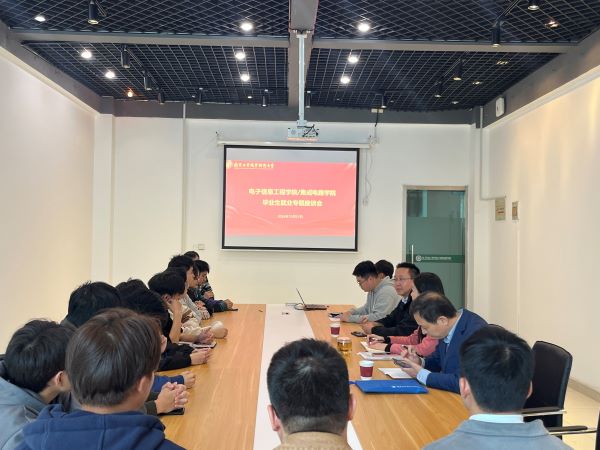 为进一步提升毕业生就业质量,推进2025届毕业生高质量充分就业,10月23日,电子信息工程学院/集成电路学院在敬业楼111会议室召开2025届毕业生就业专题座谈会。学院党委书记、常务副院长杨燕,副院长万发雨(挂职)、副院长孙肖林、关工委常务副主任赵秋、2025届各毕业班代表参加了座谈会,会议由学院就业辅导员张鲁主持。